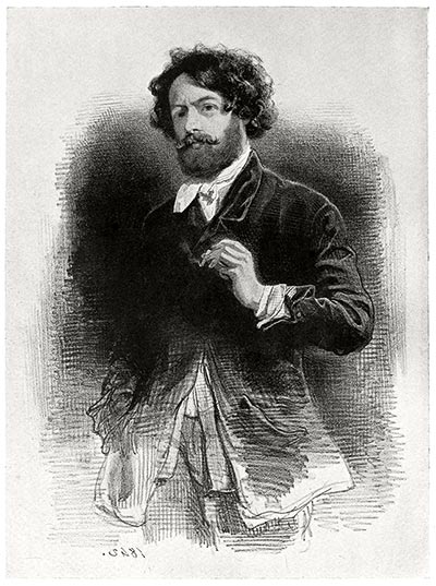 He was also a keen womanizer although it is impossible to tell whether he ever really loved. Cold and convoluted in his love letters, which seemed to be just another stylish fencing exercise for him—if one is to judge from the fragments that have been passed on—he was a true 1830 dandy. Handsome with blond and curly hair, elegant, fashionable,[3] sophisticated and laying down the law on men’s wear, he wore rings over his gloves and was incomparable for the curve of his hat and the cut of his suit. He sought the company of writers (rather than artists), inviting his friends–both male and female–to his home to join private parties. These were true artists' parties, which he himself described as follows: “We mock everything, life, art, love, and the women who are there and don’t care about mockery.” The time had not come yet when Gavarni would have the rare good fortune–let’s speak the word: genius–to find a new literary form: his captions.