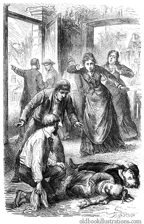 A group of people have just found two children lying on the floor and looking as though they could be dead or passed out.