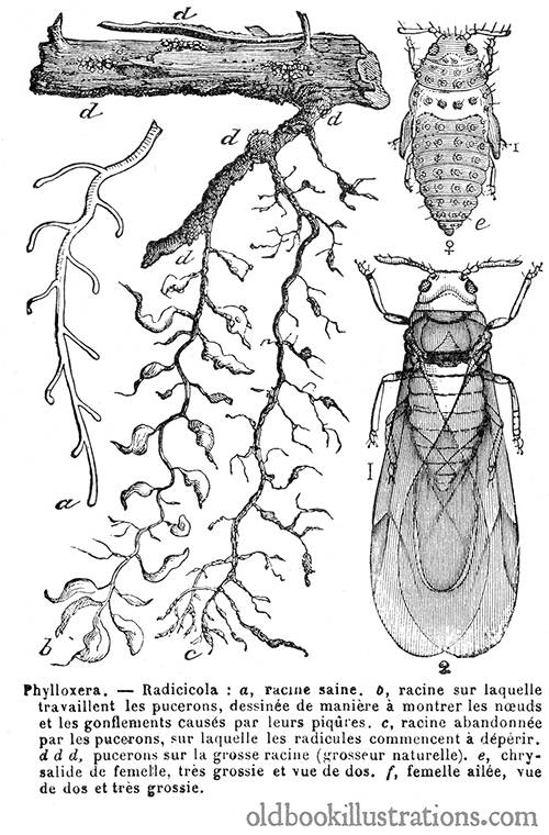 {{cite web | title=Grape Phylloxera | url=https://www.oldbookillustrations.com/illustrations/phylloxera/ | author=Unknown | year=1885-1891 | access-date=December 8, 2025 | publisher=Old Book Illustrations}}