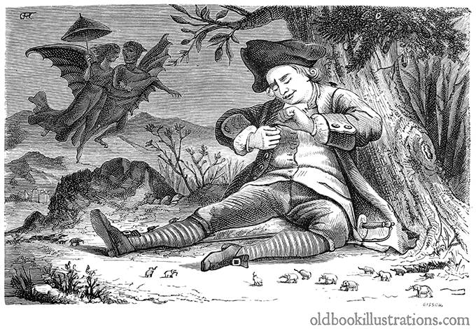 {{cite web | title=Cousin on the Moon | url=https://www.oldbookillustrations.com/illustrations/sitting-under-a-tree/ | author=Courcy, Frédéric de | year=n.d. (First published 1839) | access-date=December 8, 2025 | publisher=Old Book Illustrations}}