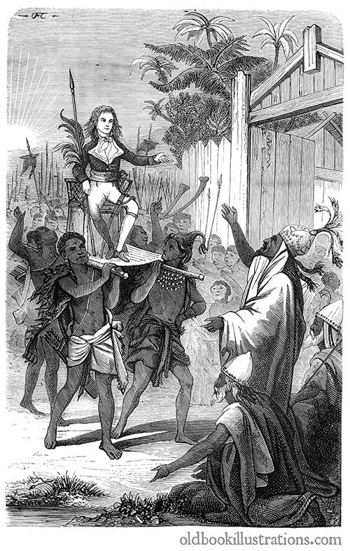 The caption reads in the original French: Robert-Robert proclamé roi des mandingues.
