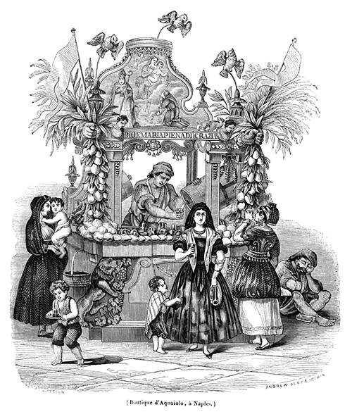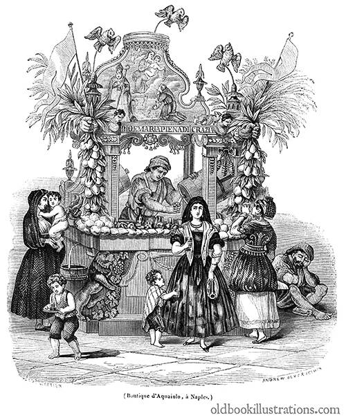The caption reads in the original French: Boutique d’Aquaiolo, à Naples.
